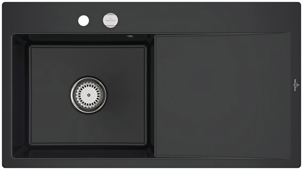 inklusive Ablaufgarnitur mit Excenterbetätigung, aus Keramik, 880 x 490 mm, Pure Black, Becken links