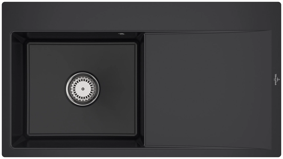 inklusive Ablaufgarnitur mit Handbetätigung, aus Keramik, 880 x 490 mm, Pure Black, Becken links