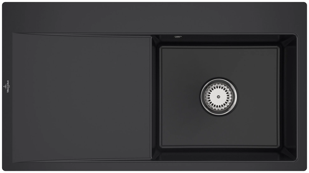 inklusive Ablaufgarnitur mit Handbetätigung, aus Keramik, 880 x 490 mm, Pure Black, Becken rechts