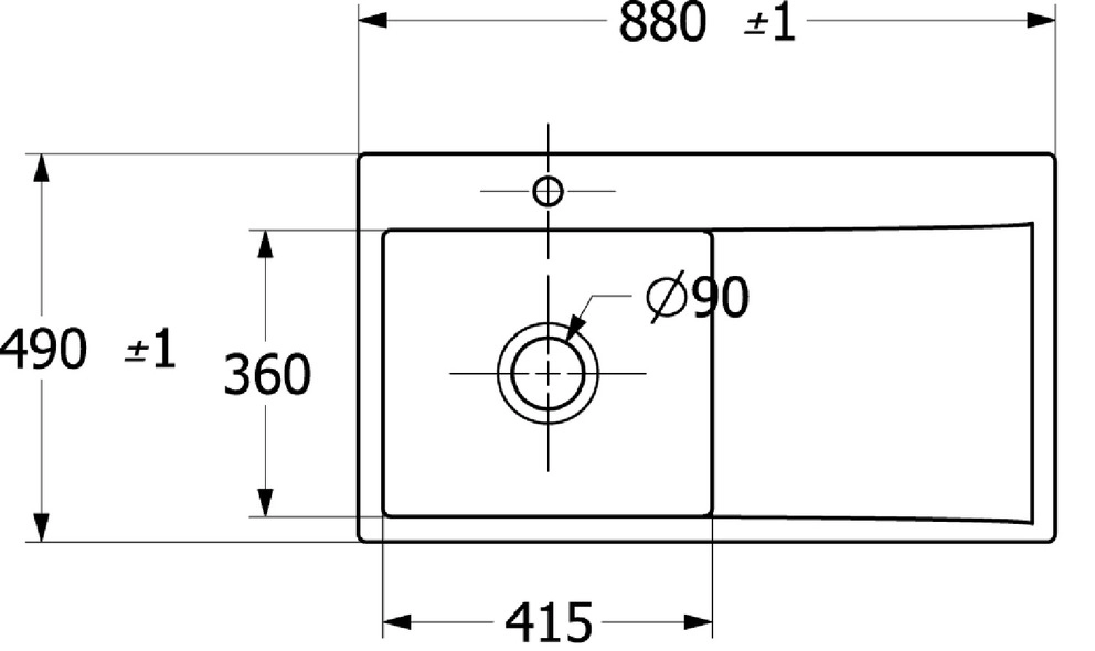 inklusive Ablaufgarnitur mit Excenterbetätigung, aus Keramik, 880 x 490 mm, Snow White, Becken links