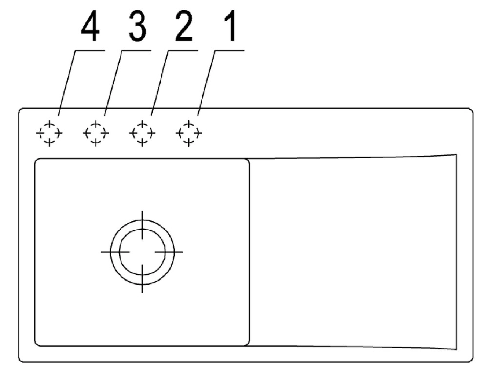 Bitte geben Sie bei der Bestellung die Nummer des Hahnlochs an (siehe Zeichnung),