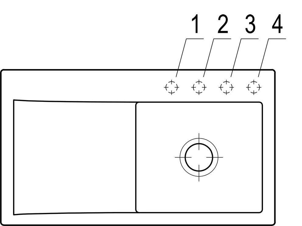 4 vorgebohrte Hahnlöcher
