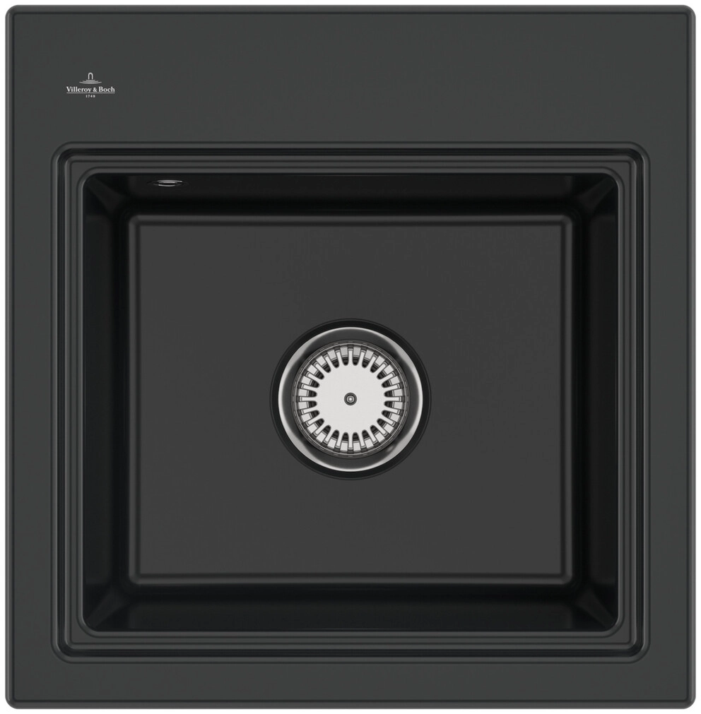 inklusive Ablaufgarnitur mit Handbetätigung, aus Keramik, 500 x 510 mm, Pure Black