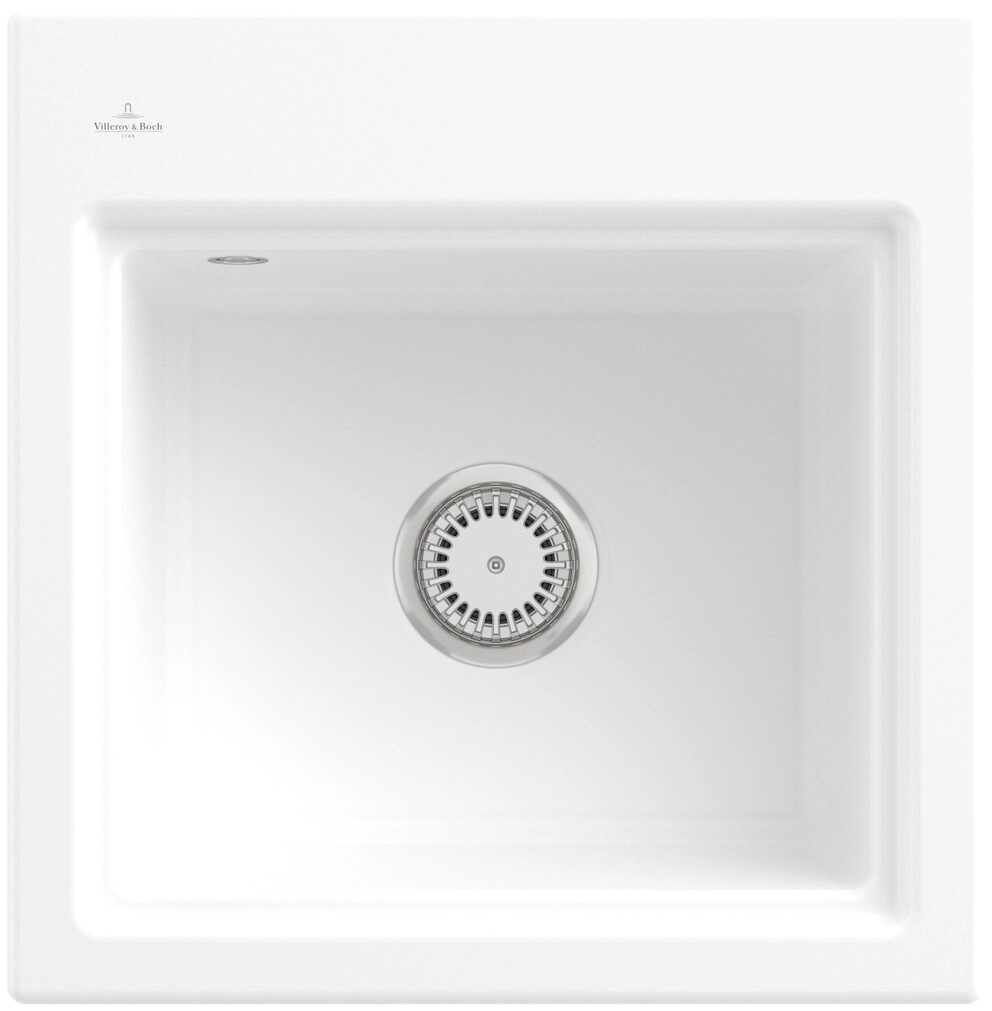 inklusive Ablaufgarnitur mit Handbetätigung, aus Keramik, 500 x 510 mm, Stone White