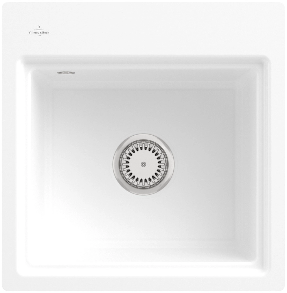 inklusive Ablaufgarnitur mit Handbetätigung, aus Keramik, 500 x 510 mm, Stone White, CeramicPlus