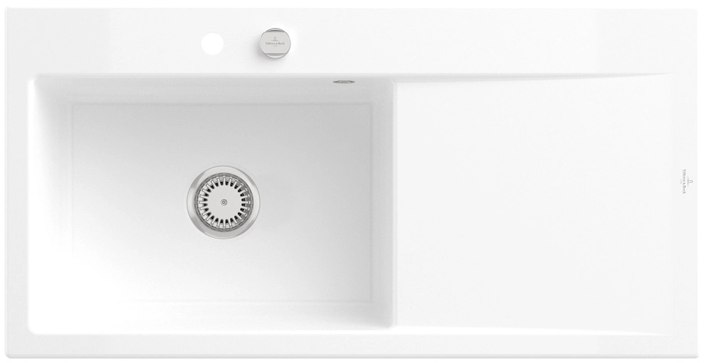 inklusive Ablaufgarnitur mit Excenterbetätigung, aus Keramik, 1000 x 510 mm, Snow White, CeramicPlus