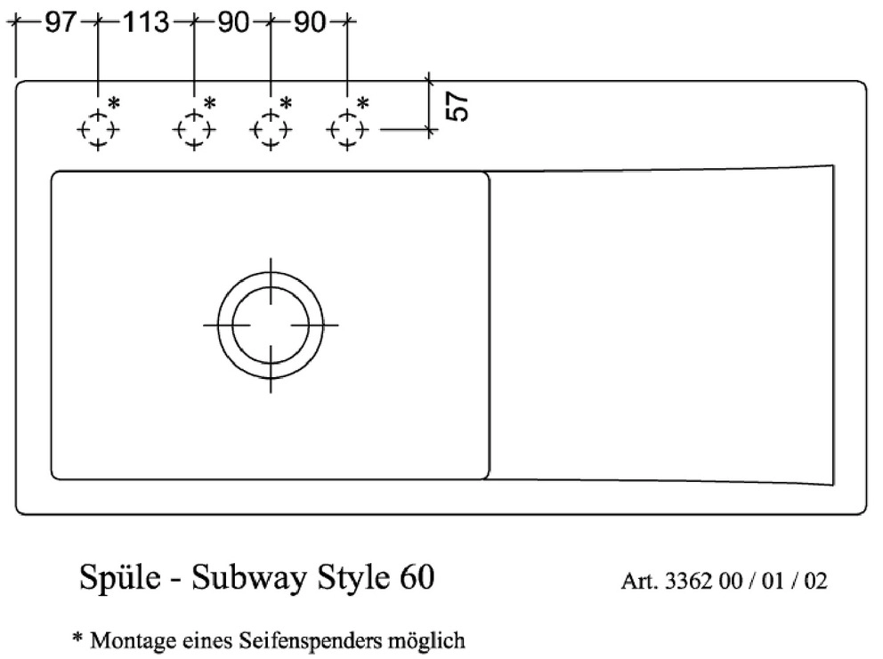 Bitte geben Sie bei der Bestellung die Nummer des Hahnlochs an (siehe Zeichnung),