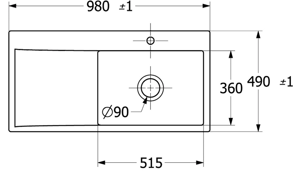 inklusive Ablaufgarnitur mit Excenterbetätigung, aus Keramik, 980 x 490 mm, Chromite, Becken rechts