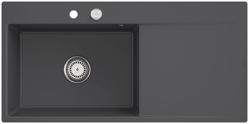 inklusive Ablaufgarnitur mit Excenterbetätigung, aus Keramik, 980 x 490 mm, Graphite, Becken links