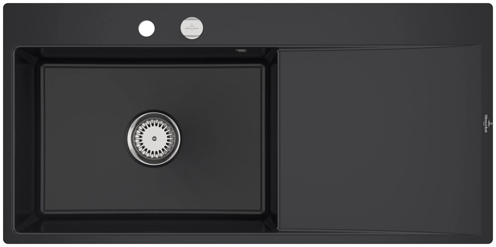 inklusive Ablaufgarnitur mit Excenterbetätigung, aus Keramik, 980 x 490 mm, Pure Black, Becken links