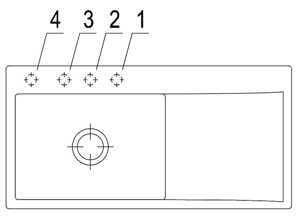 Bitte geben Sie bei der Bestellung die Nummer des Hahnlochs an (siehe Zeichnung),