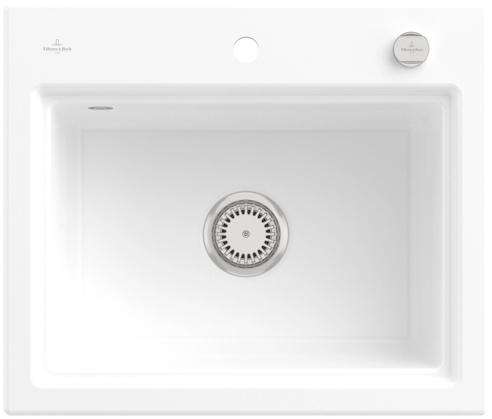 inklusive Ablaufgarnitur mit Excenterbetätigung, aus Keramik, 600 x 510 mm, Snow White