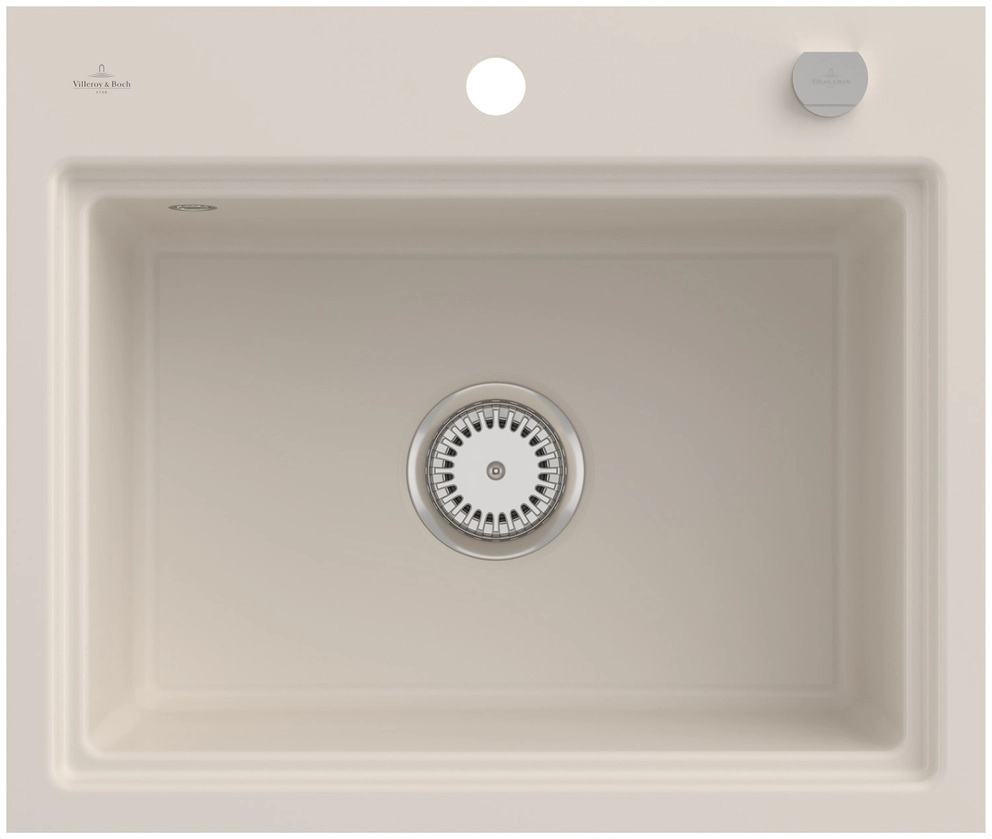 inklusive Ablaufgarnitur mit Excenterbetätigung, aus Keramik, 600 x 510 mm, Crema, CeramicPlus,