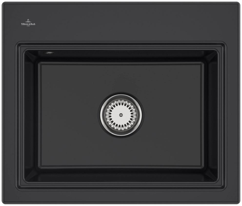inklusive Ablaufgarnitur mit Handbetätigung, aus Keramik, 600 x 510 mm, Pure Black, CeramicPlus