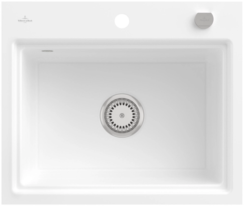 inklusive Ablaufgarnitur mit Excenterbetätigung, aus Keramik, 600 x 510 mm, Weiß Alpin, CeramicPlus,