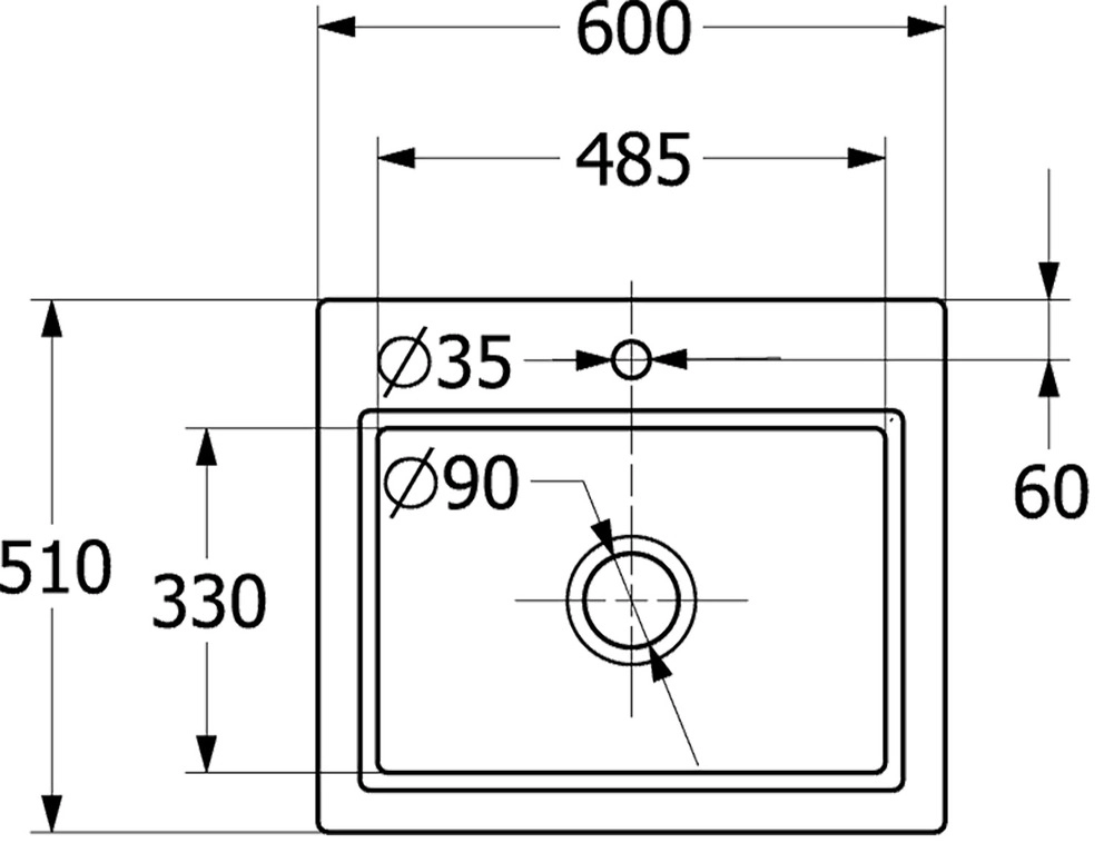Aussparung der Arbeitsplatte: 57 x 48 cm