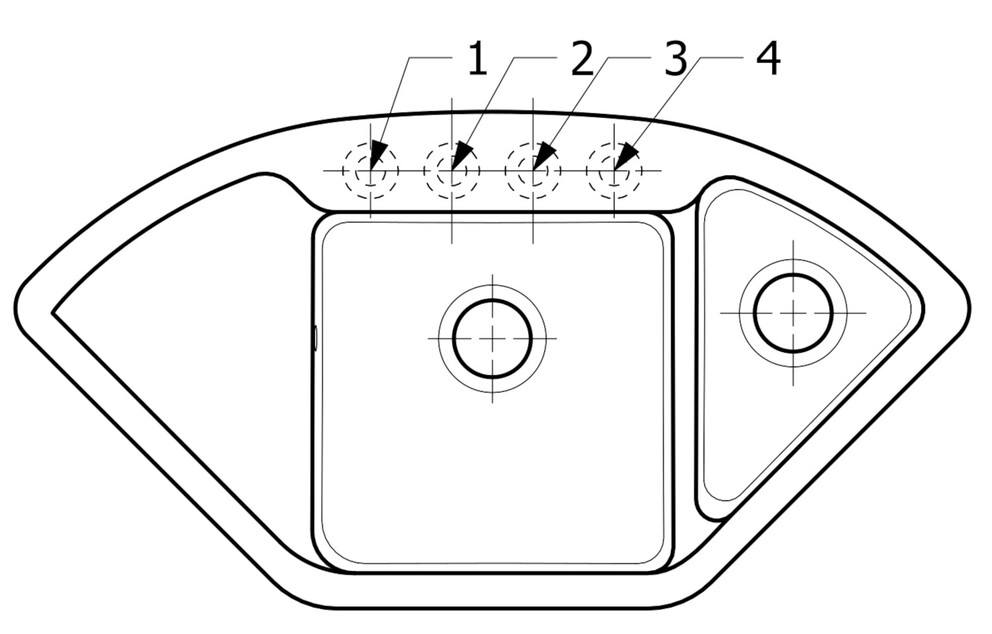 Montage-Hinweise: Montage auf einem Eckspülenunterschrank mit Schenkelmaß 90cm.