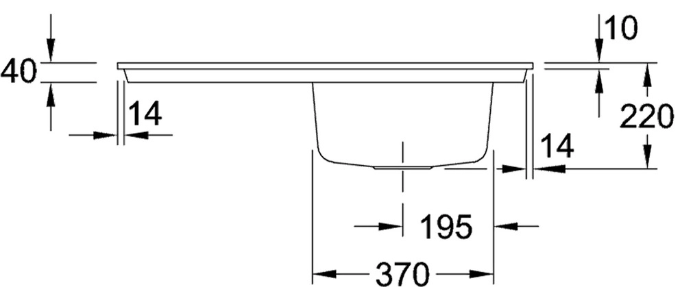 Minimalstärke der Platte bei Platzierung mit Geschirrspüler: mind. 4 cm