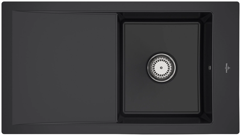 inklusive Ablaufgarnitur mit Handbetätigung, aus Keramik, 865 x 475 mm, Pure Black, CeramicPlus
