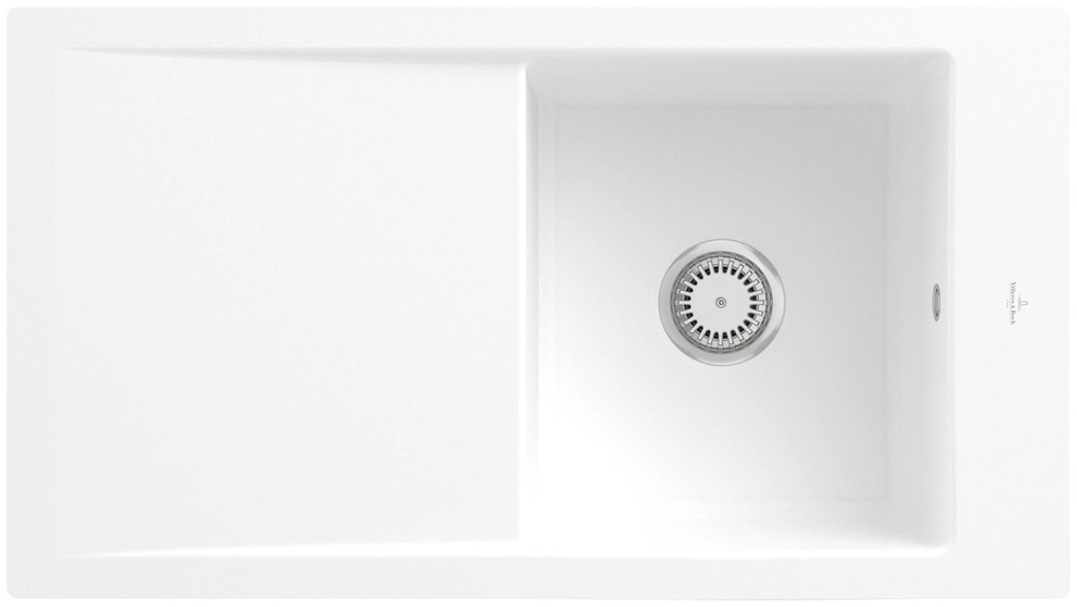 inklusive Ablaufgarnitur mit Handbetätigung, aus Keramik, 865 x 475 mm, Stone White, CeramicPlus
