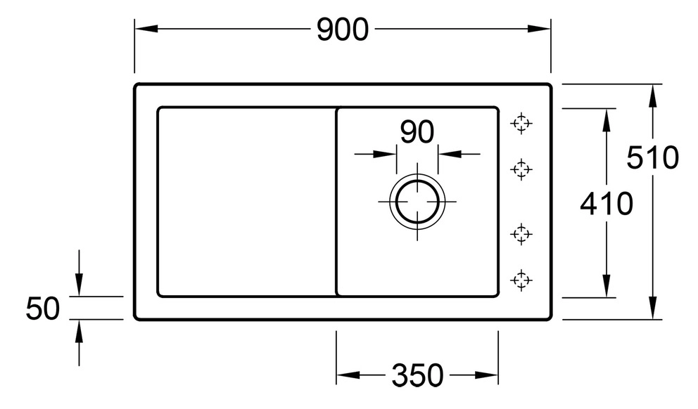 4 vorgebohrte Hahnlöcher