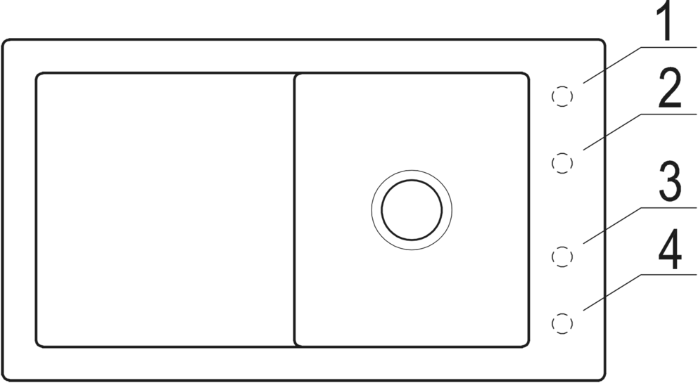 4 vorgebohrte Hahnlöcher
