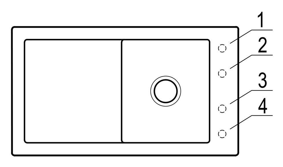 4 vorgebohrte Hahnlöcher