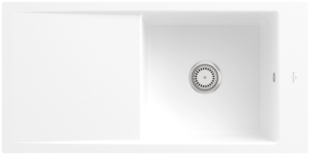 inklusive Ablaufgarnitur mit Handbetätigung, aus Keramik, 965 x 475 mm, Stone White, CeramicPlus