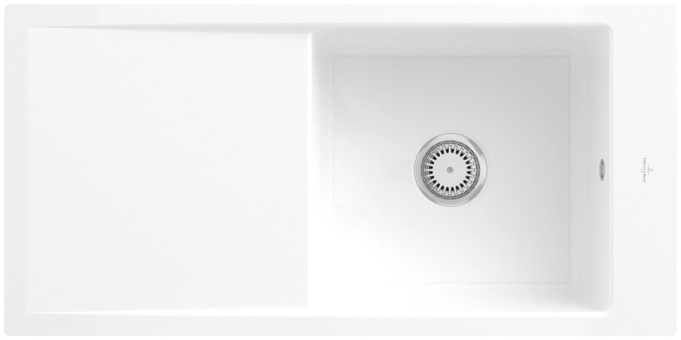 inklusive Ablaufgarnitur mit Handbetätigung, aus Keramik, 965 x 475 mm, Weiß Alpin, CeramicPlus