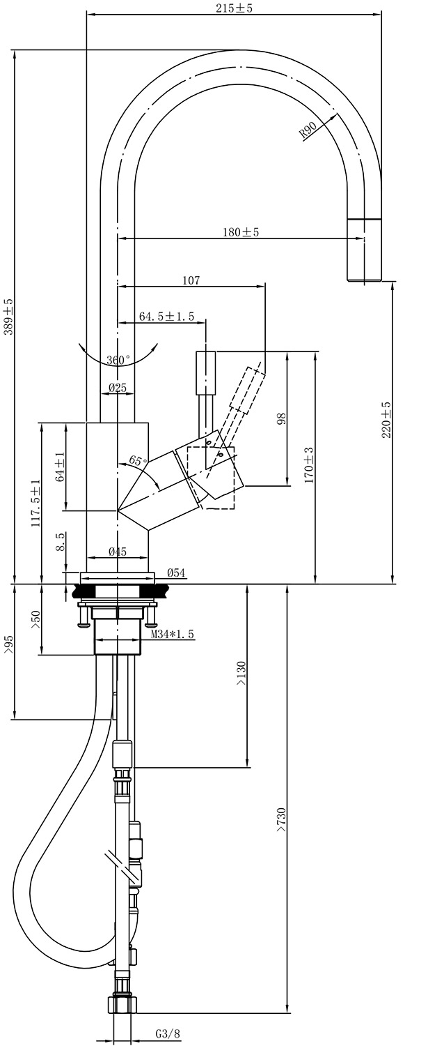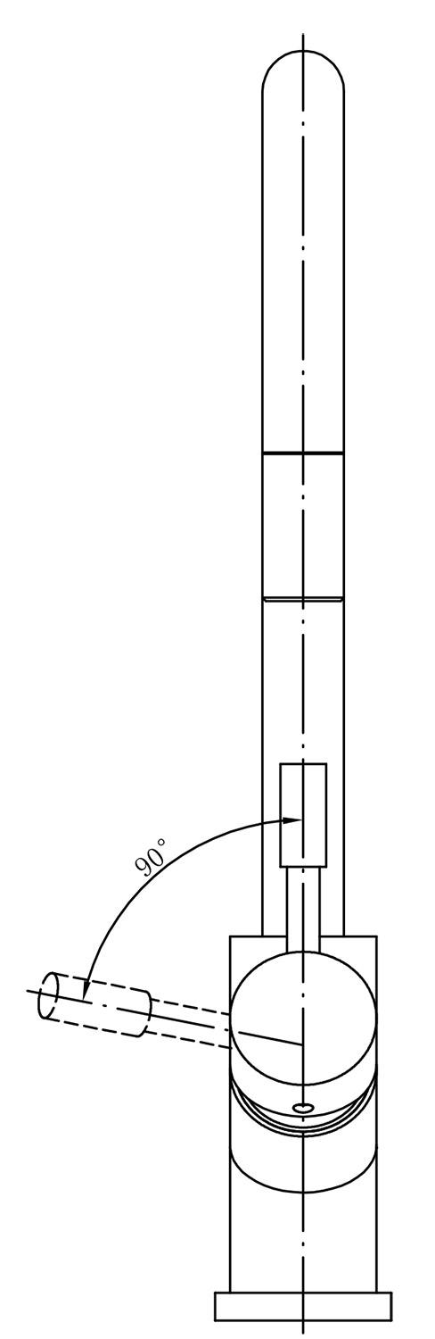 Öffnungswinkel des Hebels: 25° Montage der Armatur direkt vor einer Wand möglich, da die Kalt- und Warmwasserregulierung um 90° in Richtung Küchenspüle erfolgt