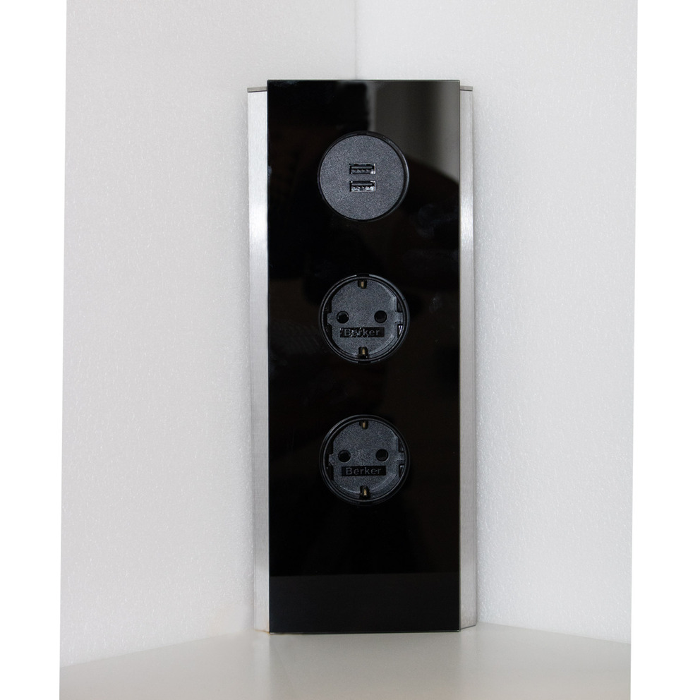WIPO Power Eck G Steckdosenelement 2x Schuko 2x USB Ladebuchse Glas schwarz