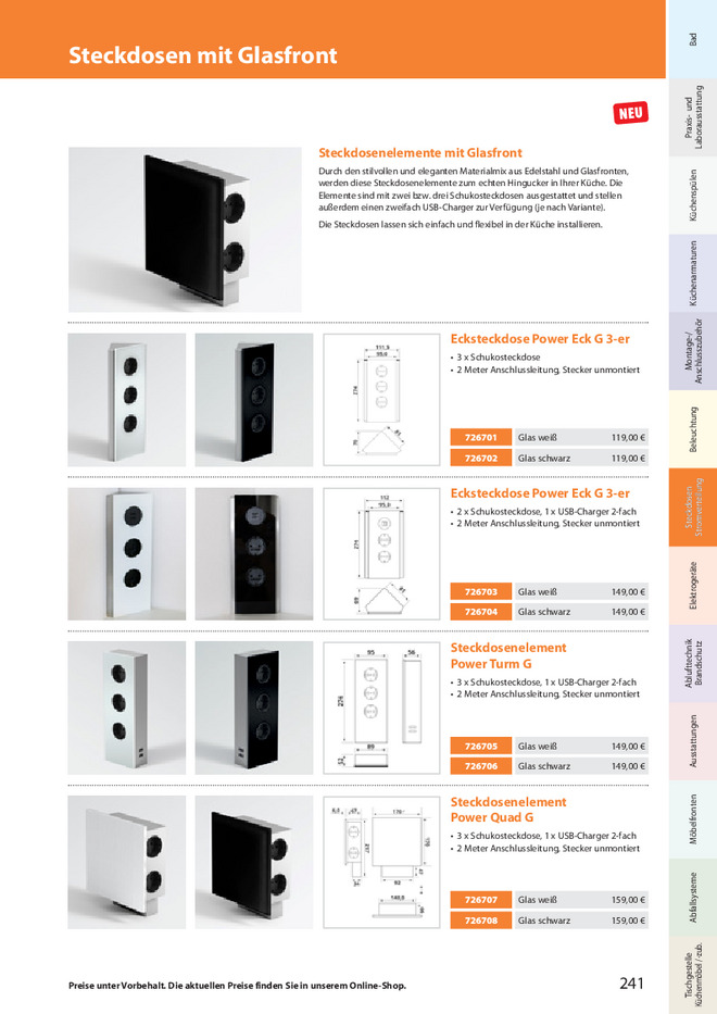 Verfügung (je nach Variante). Die Steckdosen lassen sich einfach und flexibel in der Küche installieren.